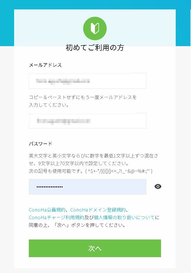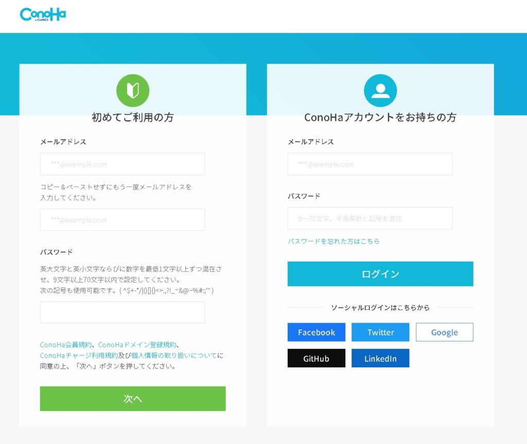 まずはConohaアカウントを作成します。