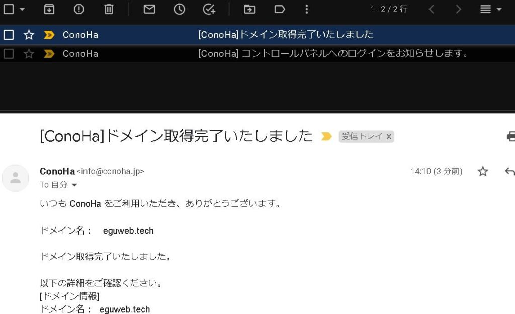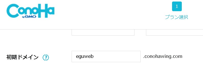 基本的には後に取得する独自ドメイン(eguweb.comなど)のドメインを使うことになりますが、conohawingアカウント用の専用ドメインになりますので、忘れない文字を入れておきましょう。