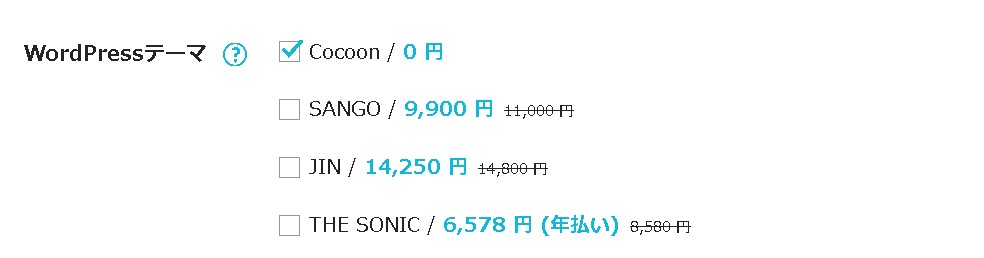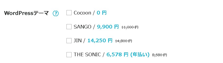 サーバーと一緒に、WordPressテーマを購入できます。一緒に購入すると割引がされますが、後から購入することも可能です。