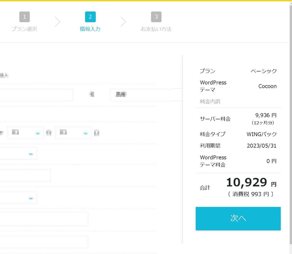 ひと通り入力したら「次へ」から次に進みます。