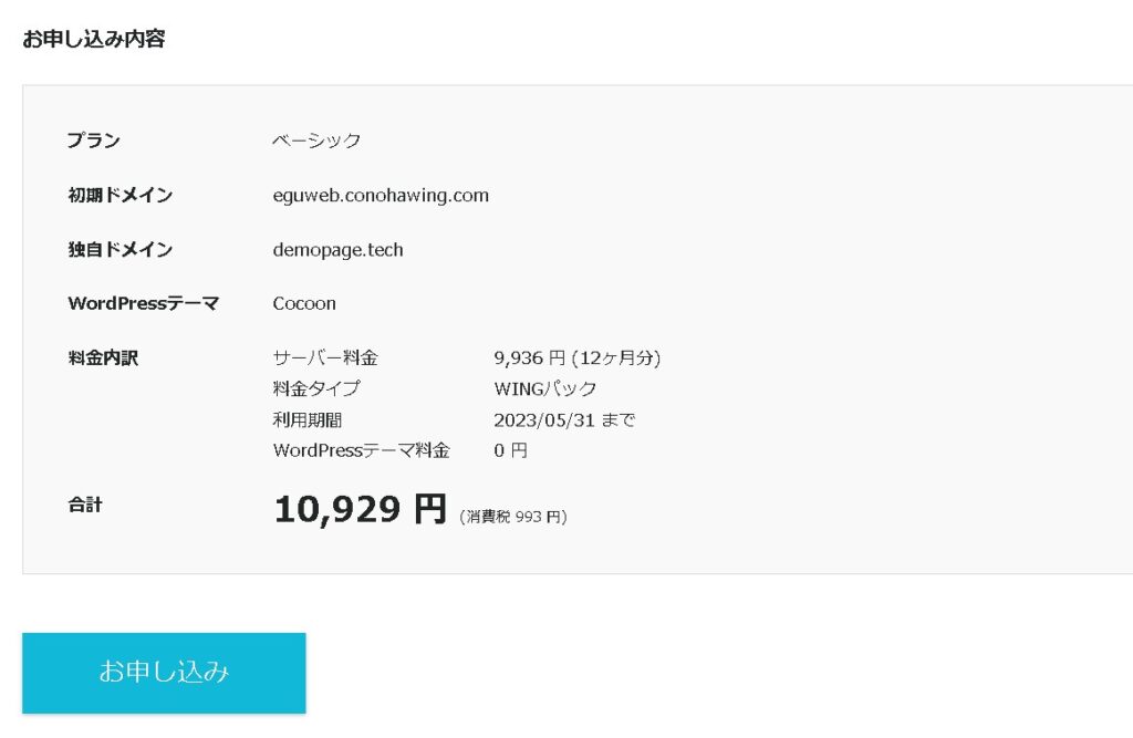 問題がなければ「お申し込み」を押します。