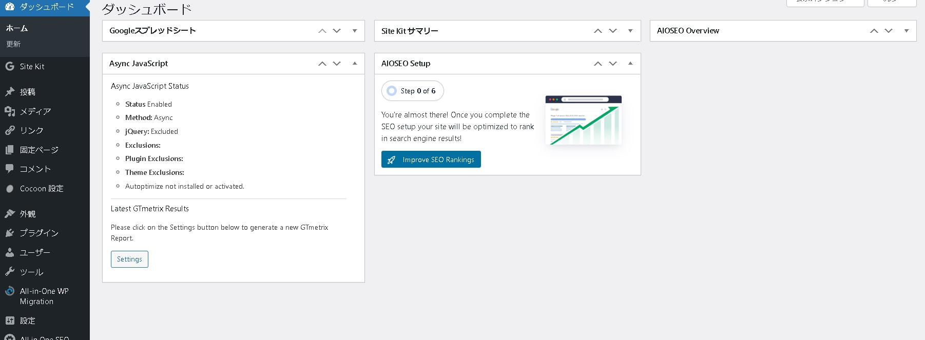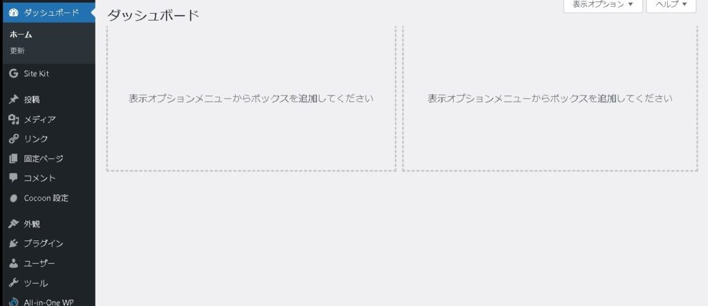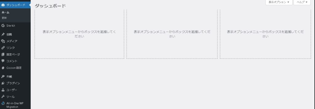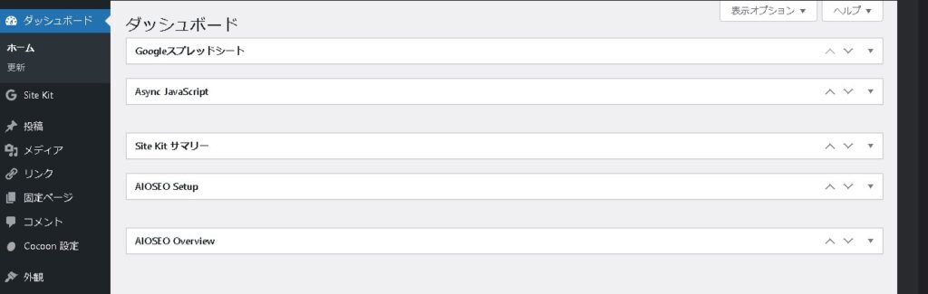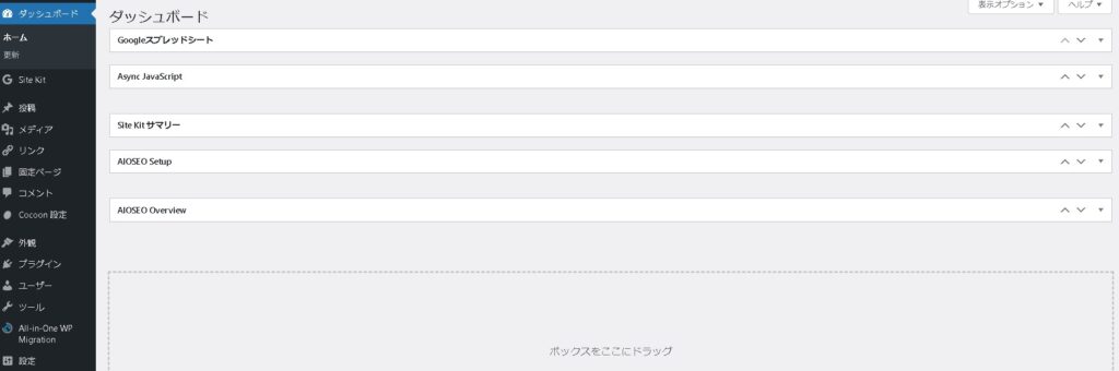 ワードプレスの管理画面を開いた時に表示される、自由に表示非表示や並び替えができる便利な「ダッシュボードウィジェット」ですが、例えばこちらのダッシュボードを「1列にしたい」と思った時に使える方法です。