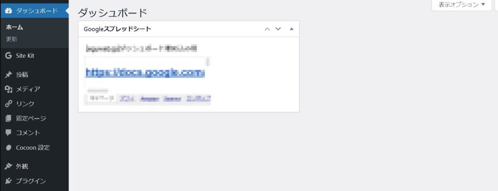 wp_add_dashboard_widget( 'custom_widget', 'Googleスプレッドシート', 'add_custom_widget' );