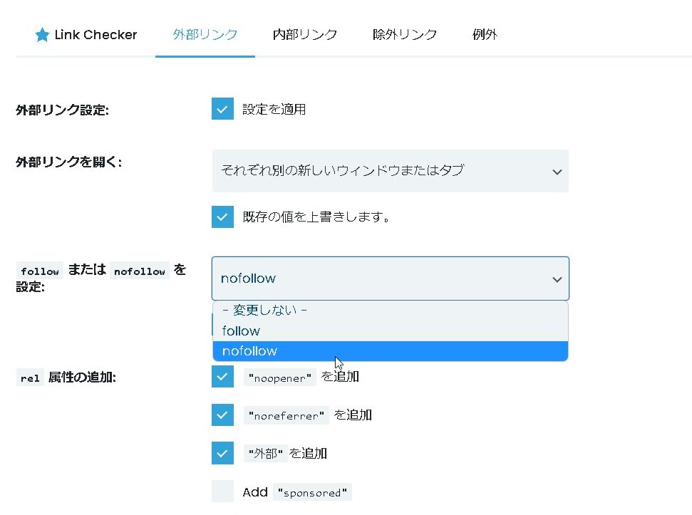 follow または nofollow を設定できます。