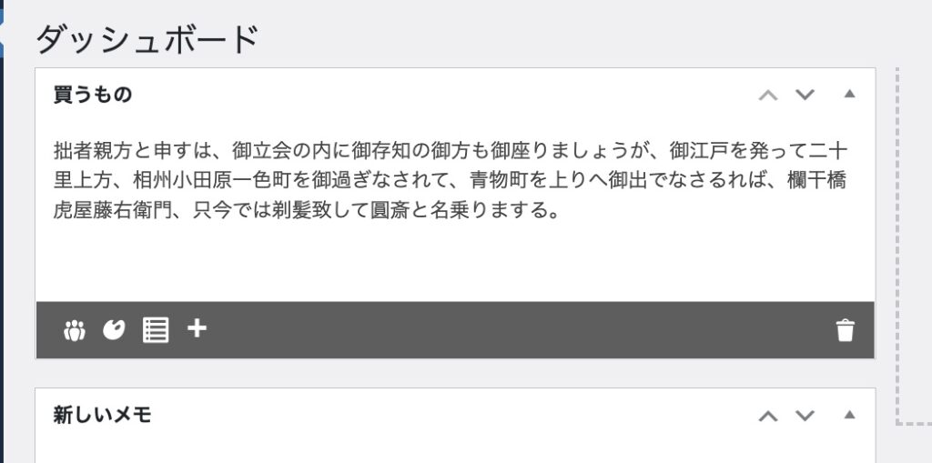 プラグインを有効化すると、管理バーに「メモを追加」という表示が追加されます。こちらをクリックすると、ダッシュボード上に新しいメモが追加されます!
