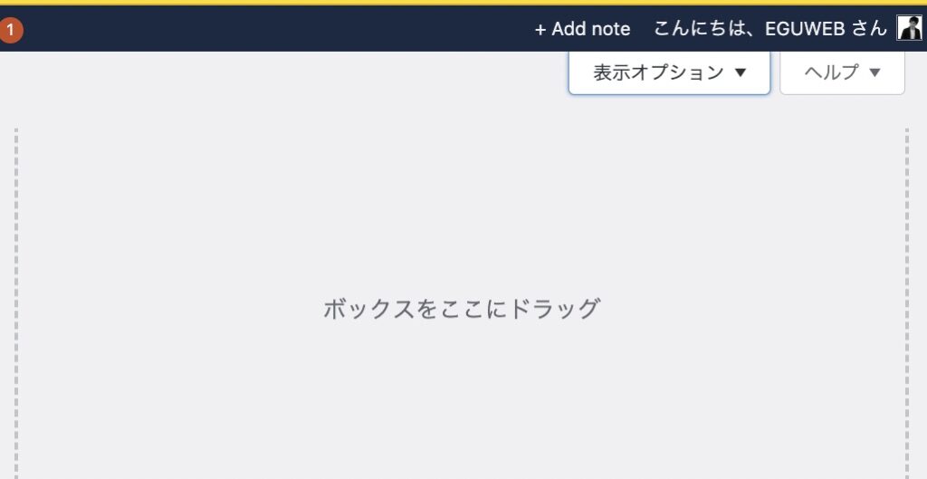 まずは、管理バー上に「+Add note」という表示が増えますので、クリックします。