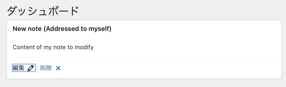 ダッシュボード上にNew noteが追加されます。「編集」を押します。