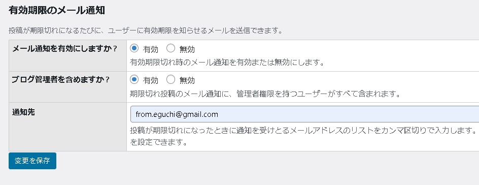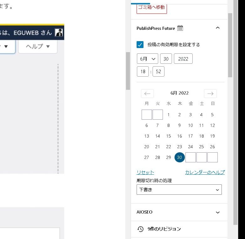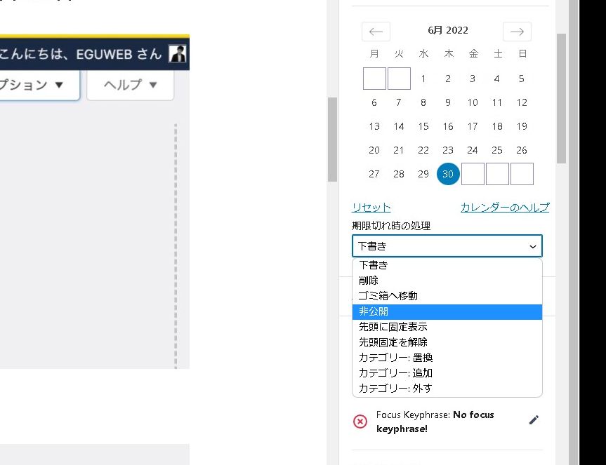 あとは、投稿の有効期限の日にちと「期限切れ時の処理」を設定すれば、設定完了です。