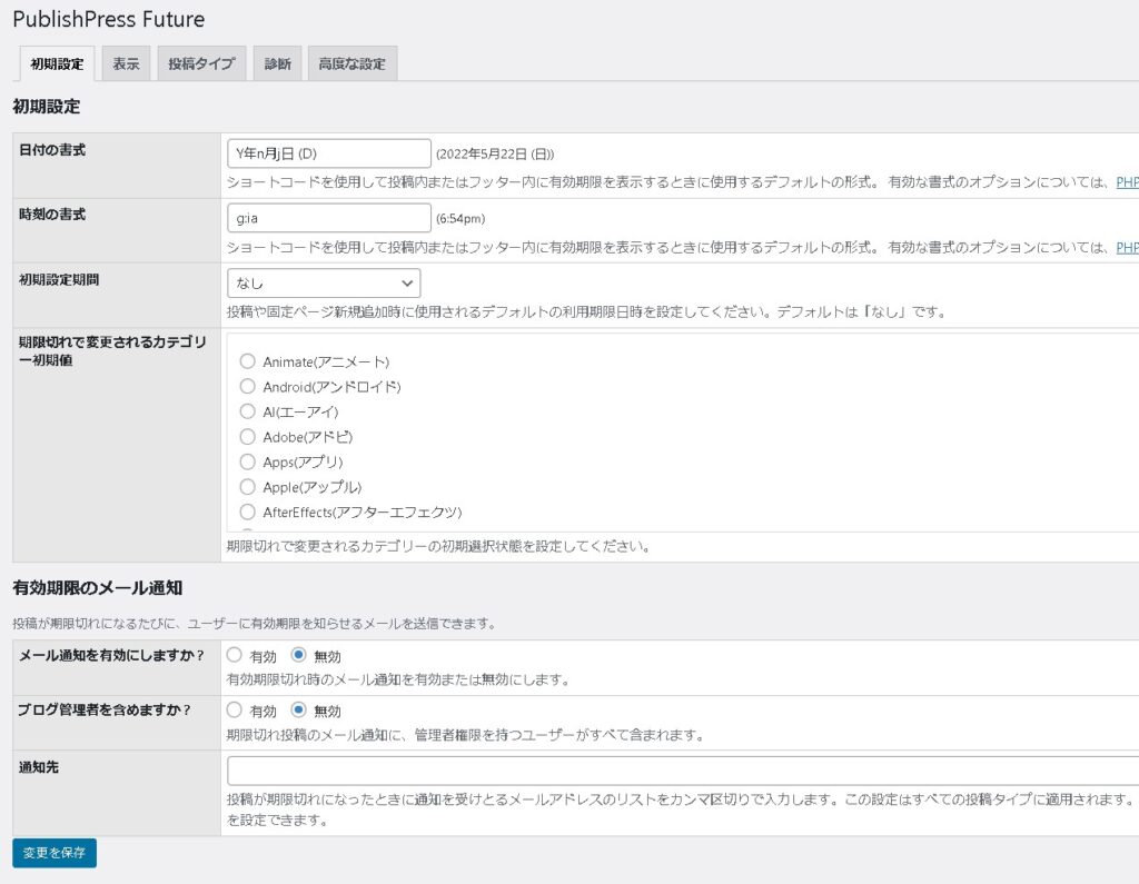 日付の書式・時刻の書式・期限切れで変更されるカテゴリー初期値などが設定できます。