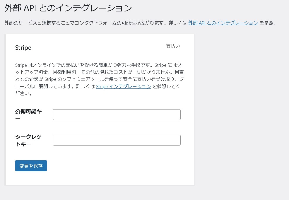 こちらに、先ほど控えた「公開可能キー」「シークレットキー」をそれぞれ貼り付けます。