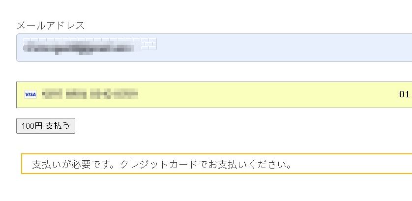 あとは、「チェックアウトへ進む」というボタンを押すと、カードの情報を入力する画面と支払いボタンが出てくるので、カード情報を入力して支払いを押せば決済完了です。