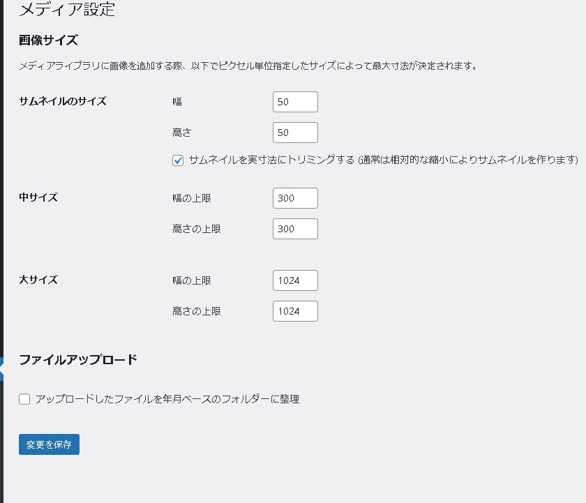 「設定」の「メディア設定」を小さくしすぎると画像がぼやける原因にもなりますので、ほどよいサイズを設定しておきましょう。