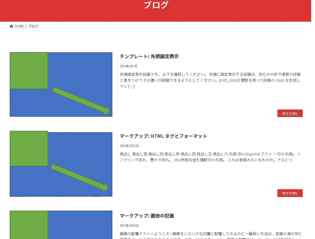 このとき、アイキャッチ画像として設定されるサムネイルのサイズが50×50になります。