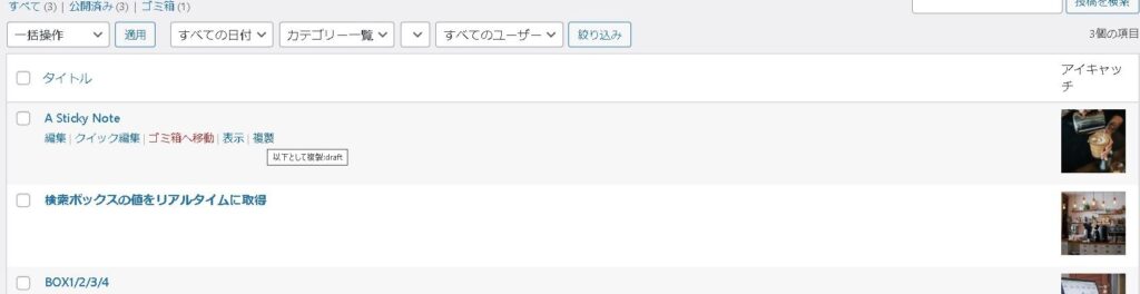 プラグインを有効化すると「複製」というメニューが投稿記事に追加されるので押すだけです。