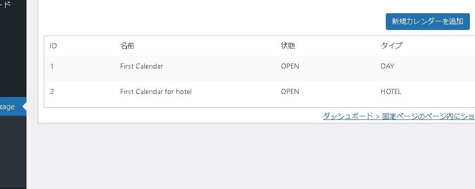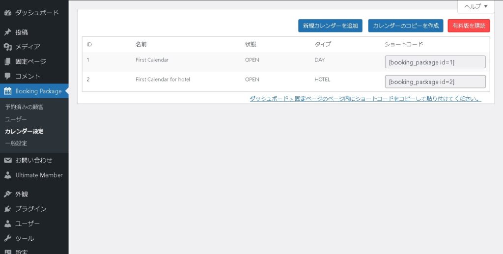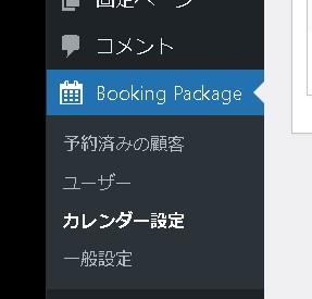 プラグインを有効化すると、ワードプレス管理画面のメニューに「Booking Package」が追加されます。