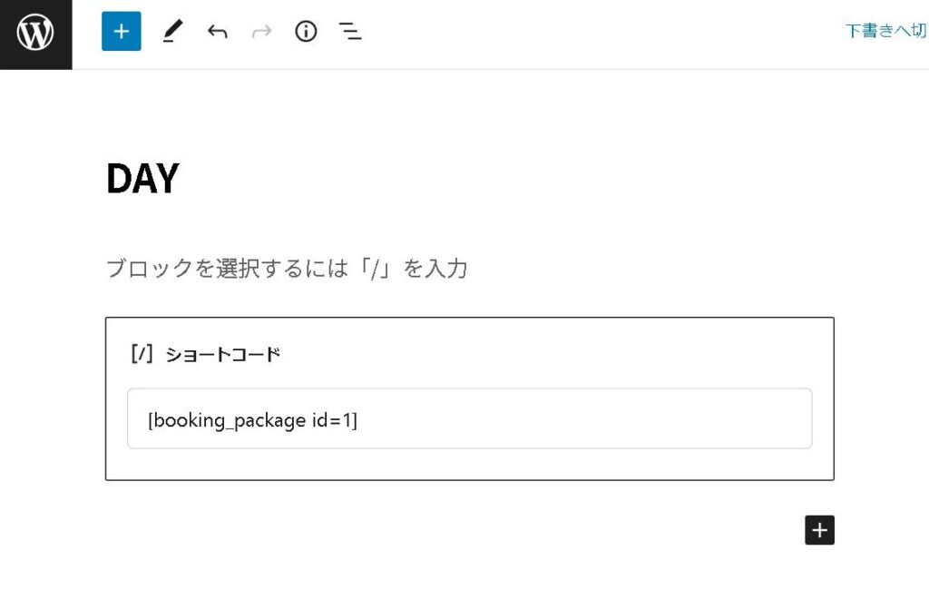ショートコードブロックにショートコードを貼り付けして更新します。