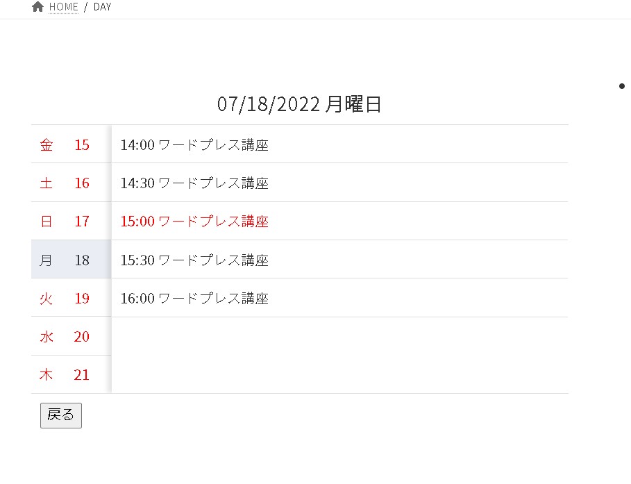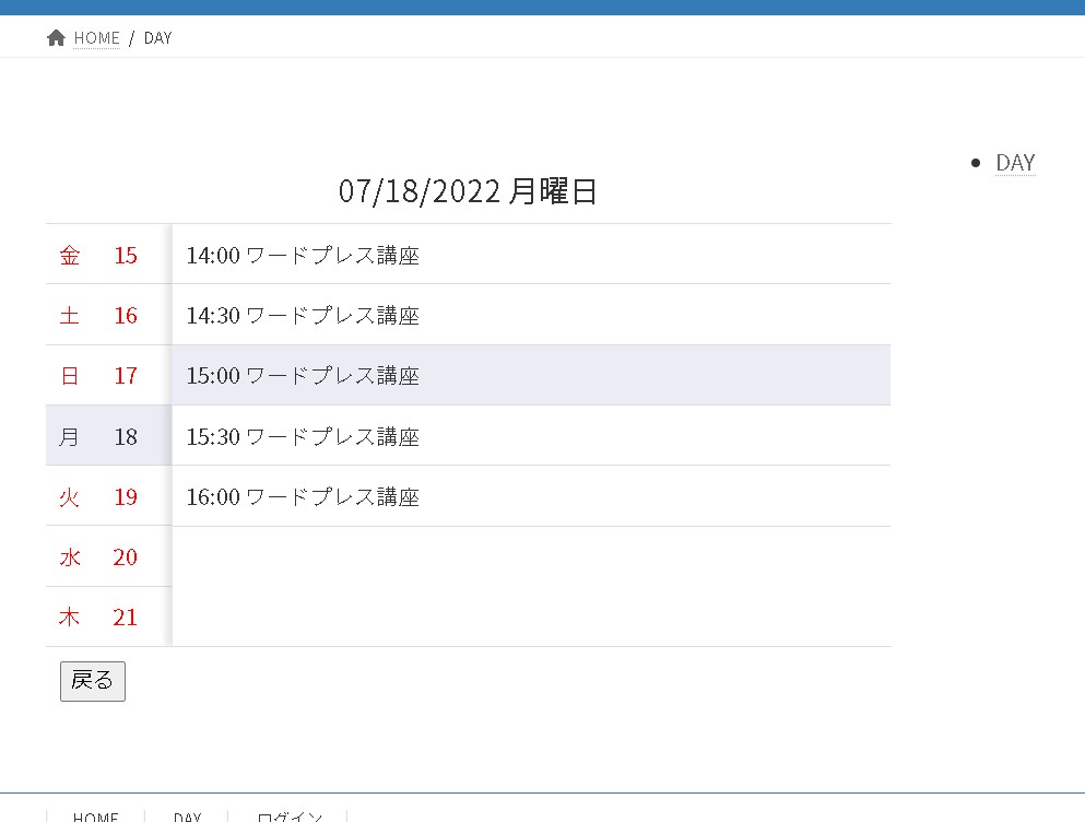 今回は「Booking Packageプラグイン」の使い方でした。無料の状態でも最低限のスケジュールを入れる→予約する、というところまで構築が可能です。