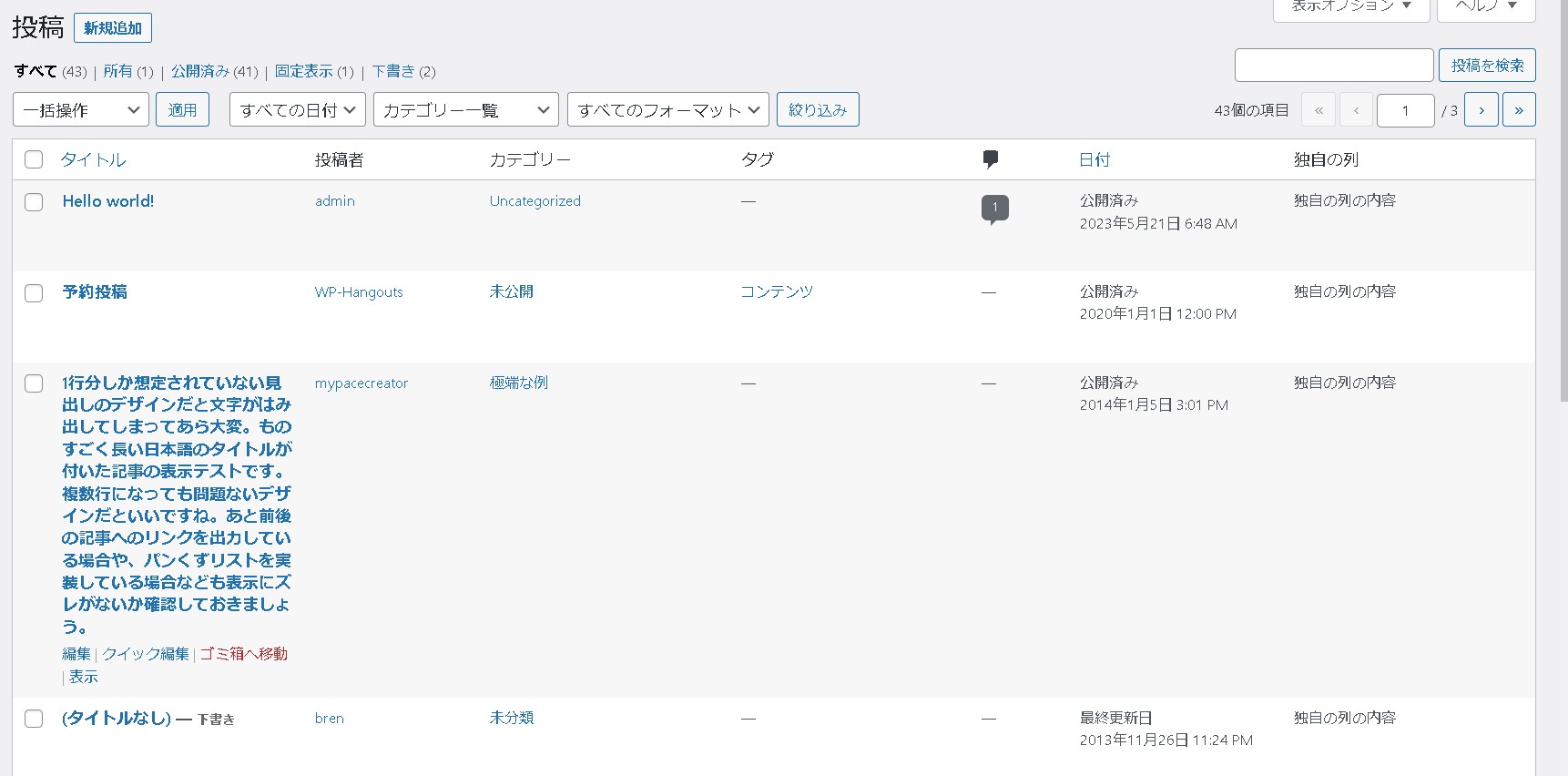 以上が、投稿一覧に独自の列を追加するための具体的な説明です。