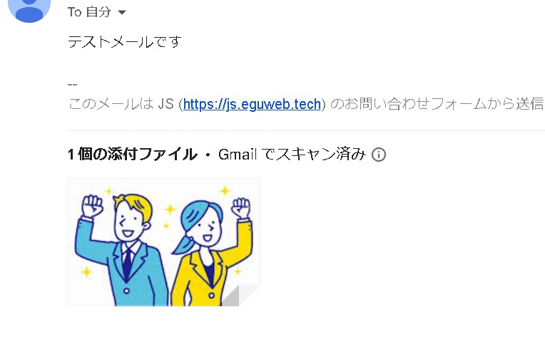 添付ファイル付きのメールが送信されました。