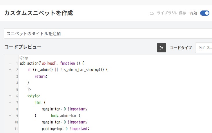 Code Snippetsプラグインを使用している場合は、以下の手順で設定できます。