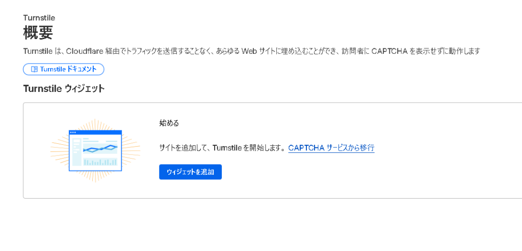 Cloudflareダッシュボードで「Turnstile」を開き、