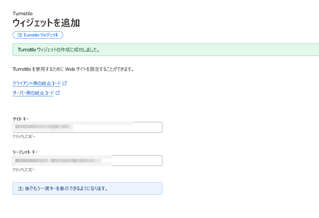 を設定して、「サイトキー」と「シークレットキー」を取得します。