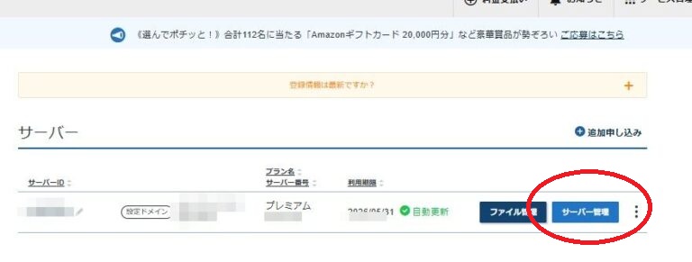 まずはエックスサーバーの管理画面にログインします。