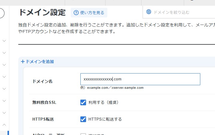 - 取得したドメインを入力