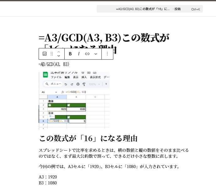 特に、数式、コード、スプレッドシート関数、手順説明、入力例をよく使うブログでは、編集ミスの防止にもつながります。
